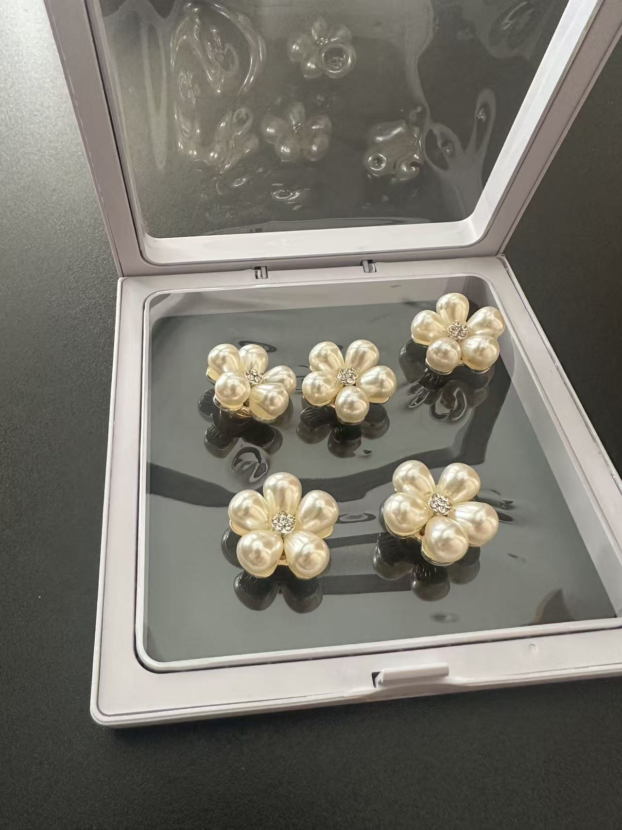 Noir Pearl No.5 is a refined pet jewelry design inspired by classic black-and-white elegance and modern couture aesthetics. The collection features luminous pearl accents framed in delicate gold detailing, paired with sculptural black floral elements that create a bold yet balanced silhouette.